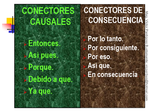Los conectores casuales son aquellos que unen palabras u oraciones indicando razón o causa de lo que sucede.